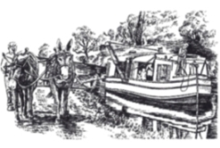 However, before any boat could "set sail" many, many preparations would need to be made. Lumber (white oak) donated by area farmers would need milled and cut into the appropriate pieces and of course a construction site and storage yard near the canal was a necessity. Even while the towpath itself had long been used by locals as a walking trail, the canal banks would need cleared of any obstructions to boat operations. Consideration was also needed to provide two locations within the 40' wide canal where this approximately 60' long vessel could turn around.* Teams of mules to provide the motive power would also need to be acquired. Certainly not the least among their needs was to drum up support and publicity so that when the boat would finally be made ready the whole project would prove worthwhile.10